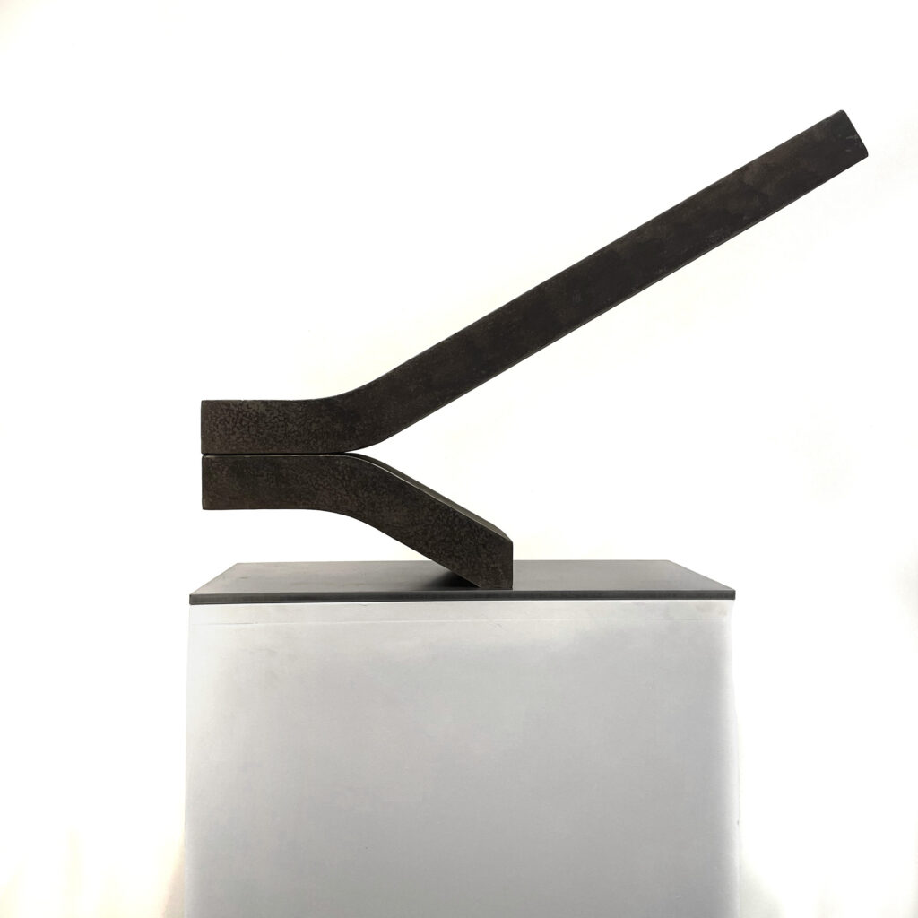 Au delà de la composition des volumes, la sculpture a aussi été pour moi l’occasion de travailler la matière. L’oxydation de l’acier, la patine du bronze, les surfaces polies, le grain du béton, tout ce qui donne envie de toucher…