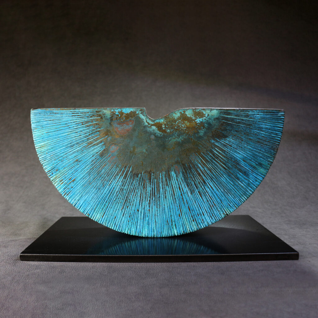 Gravé, oxydé et poli sur socle acier laqué