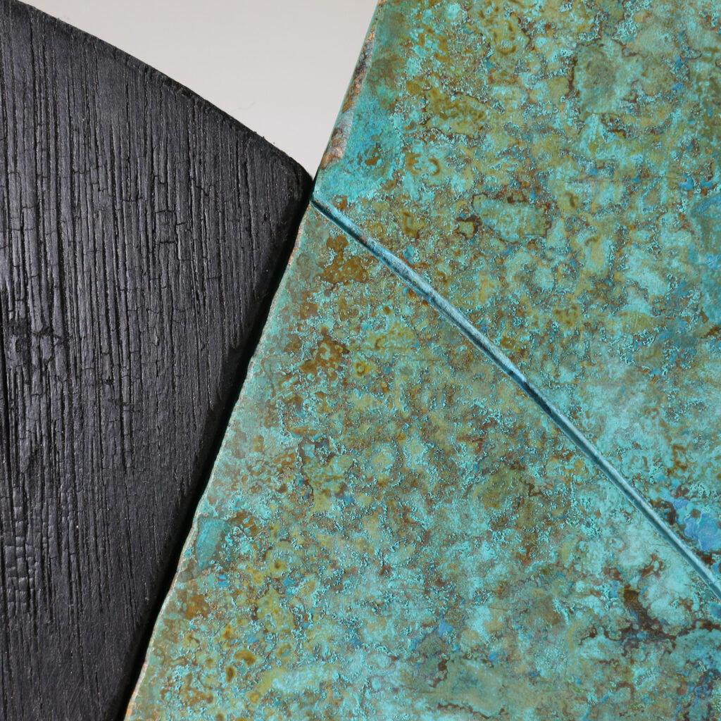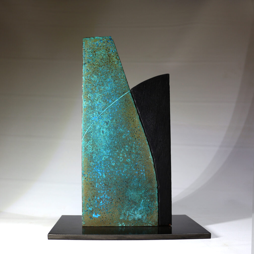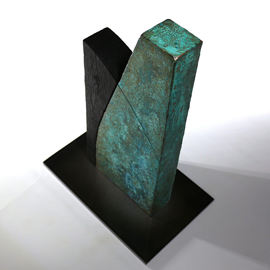 Bronze gravé, oxydé et poli sur socle acier laqué,